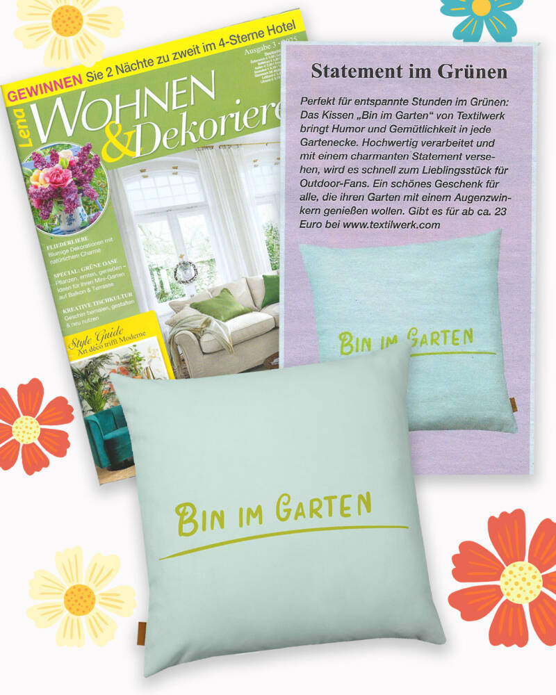 Yay, mein Kissen wurde in der „Lena Wohnen & Dekorieren” (Ausgabe 04/25) abgelichtet. Ich freue mich sehr!